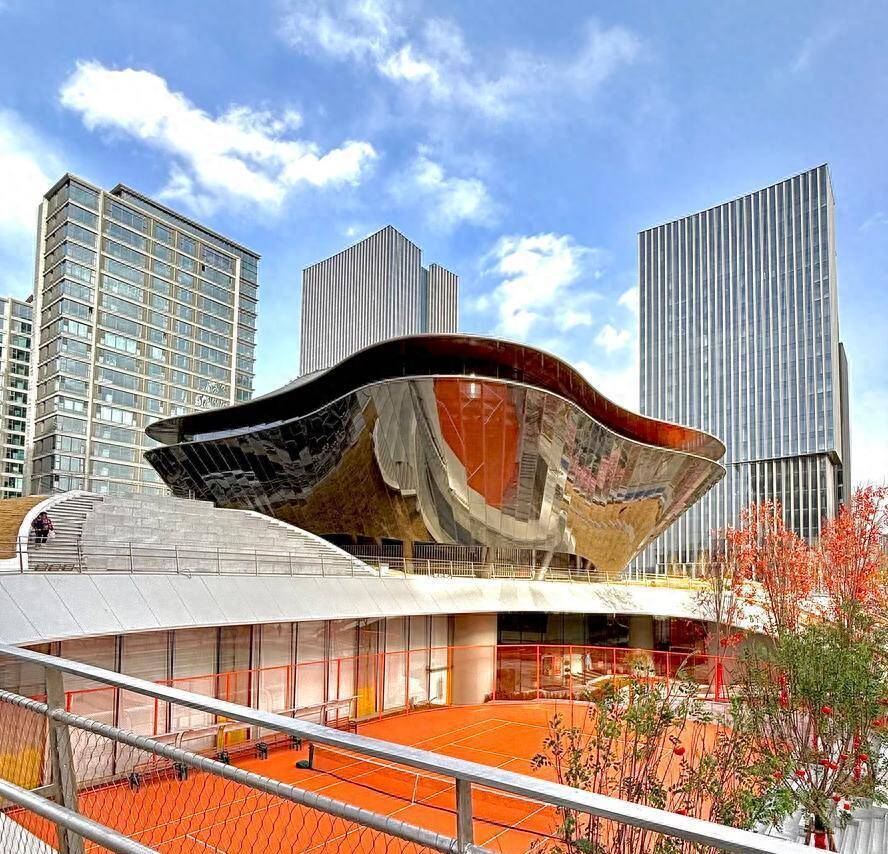 模式由MAD建筑事务所创举东谈主马岩松偏激团队商酌。该块地底本有个老浩劫,即动力中心的冷却塔占了近5200立方米的空间,相关词,建筑师没按套路出牌,将冷却塔抬升至二层,剿袭半透明、高反射的ETFE膜材进行包裹,奥密将底本碍眼的工业设立,酿成了一朵飘在树冠上的“云”。