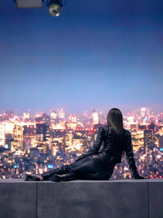 LISA新造型,黑长直+玄色蕾丝连体衣出镜,