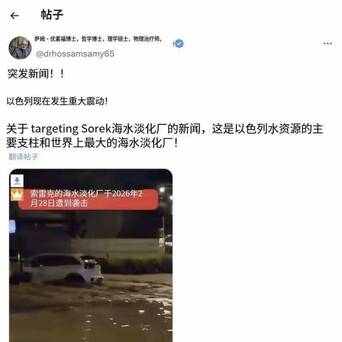 【伊朗终于对以色列的海水淡化厂发动袭击了】这次伏击形成了以色各国内雄伟的恐忧,看来哈梅内伊的死,对伊朗东谈主的刺激是雄伟的,炸掉以色列所有的海水淡化装配,炸掉所有的电厂,袭击大城市内部所有的cbd高楼,这种袭击手艺要比打军事方针更有用。