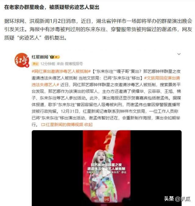 包括之前穿警服直播被拘留的嘎子谢孟伟,还有因为容留他东说念主吸毒被判刑的“东来东往”,很显著,这便是一帮劣迹艺东说念主在借机复出。