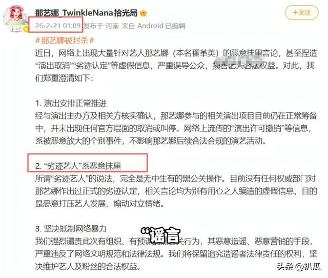 事情到了这一步,那艺娜的团队果然还在造反,那艺娜的团队账号果然还否定了所谓“劣迹艺东说念主”的音信,宣称是“坏话”。
