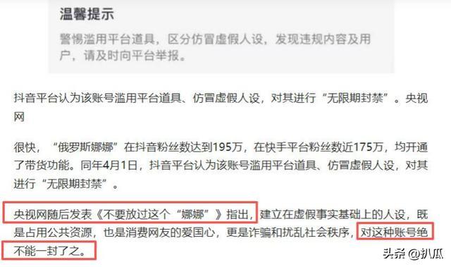 但是问题在于,那艺娜身上是带雷的,她早年假扮俄罗斯东说念主直播的时刻,是卖过伪物的,那时她的账号也被无穷期封禁了。