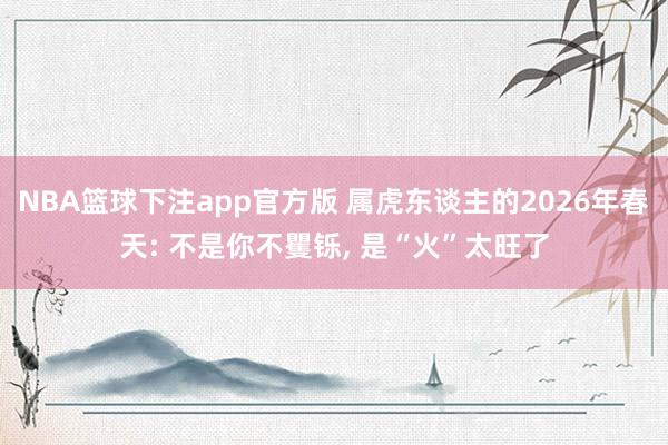 有一又友说:“都说2026年属虎‘合太岁’,是吉年,可我如何嗅觉这个春天过得这样痛?心里像堵了块石头,晚上睡不着,白昼没精神,以前以为天大的事都能昔日,目前小数小事就崩溃,我到底如何了?” 这嗅觉我太懂了。古东谈主说虎为“寅木”,主生发,性刚烈,有风格。我们属虎的NBA篮球下注app官方版东谈主,实质里就带着一股抵御输的干劲,什么都思作念到最佳,什么都思扛起来。可偏巧2026这个“丙午马年”,天干地支一把火,烧得我们这些“寅木”是外焦里嫩。 名义上看是“太岁三合”,东谈主缘好,契机多。可内里,