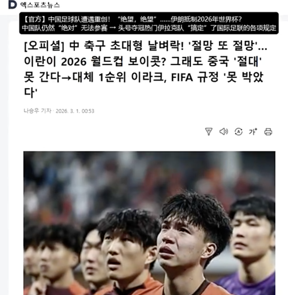 2月28日,伊朗遭受以色列及好意思国的空袭,中东场面堕入唠叨。伊朗足协示意伊朗队梗概率无法参加天下杯。随后,韩媒嘲讽中国队并不成拿到递补的限额。